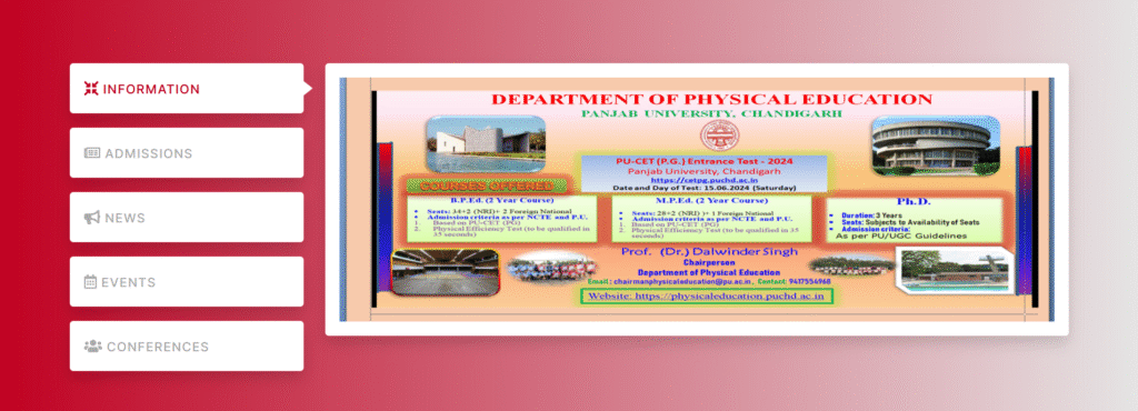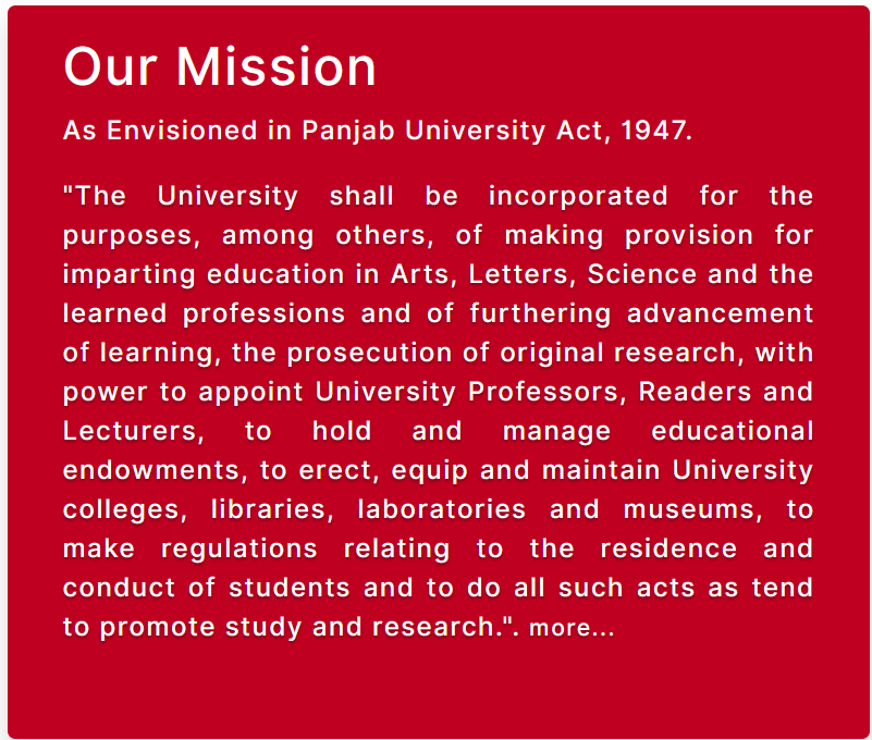 Panjab University Style Header 🏠 ❓ ✉️ 📄 ♿ 📘 ❌ 📸 Responsive Navigation Menu ☰ ABOUT PU OUR ADMINISTRATION ACADEMICS RESEARCH STUDENTS EXAMINATION ▾ Datesheets Result UG Examination PG Examination Fee Through Bank COLLABORATIONS IQAC ADMISSIONS Panjab University Footer